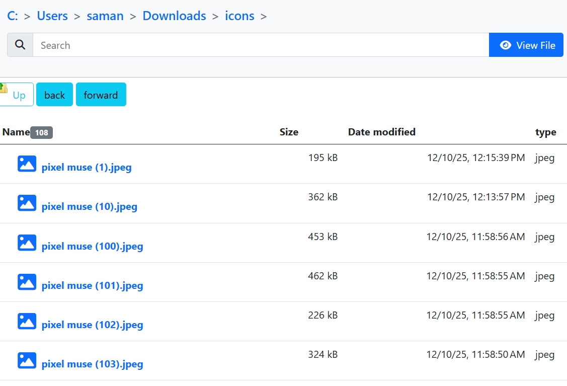 This extension allows the users to quick view the files locally supports mostly pdf, mp3, jpg extensions.